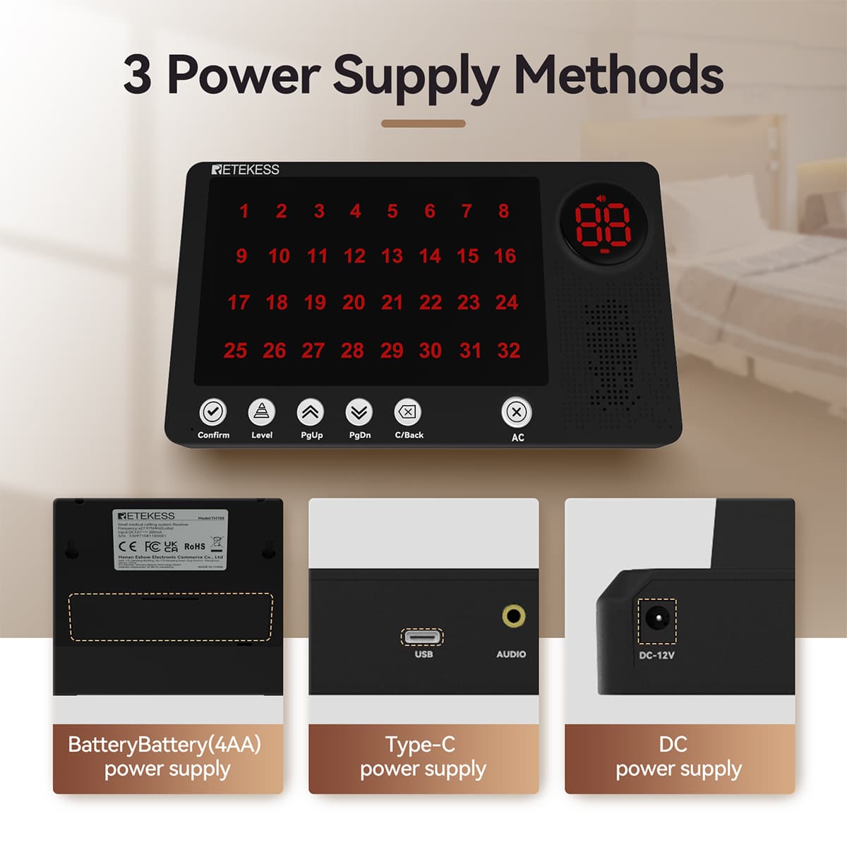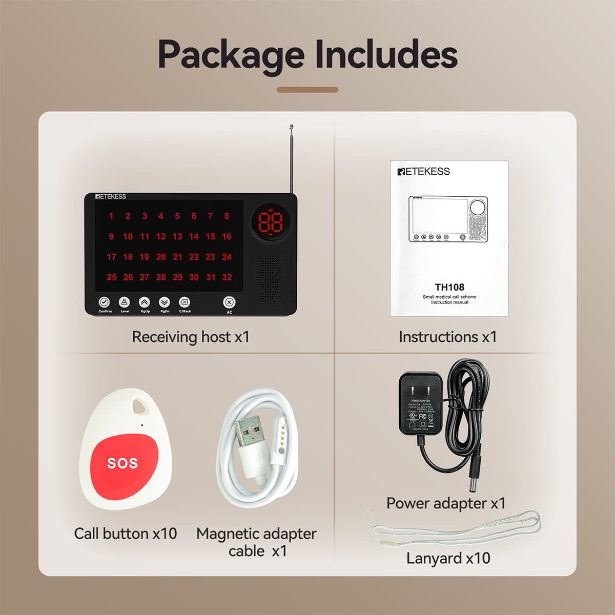 Buy Retekess TH108 Long Range Nurse Call System with TH010 IP67 Waterproof Call Button in Pakistan from Smart Control. 300–500m range, LoRa 427.975MHz, supports 256 buttons. Ideal for hospitals, clinics & nursing homes.